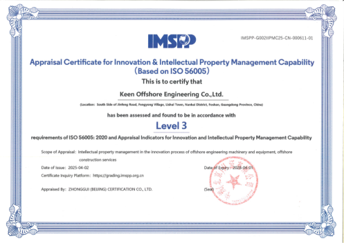精銦海工是國內(nèi)海洋工程裝備領域第一家獲得ISO 56005《創(chuàng)新與知識產(chǎn)權管理能力》(3級)認證的企業(yè),也是佛山市首家獲得3級認證的非試點民營企業(yè)、南海區(qū)首家獲證的企業(yè),目前全國僅43家3級認證企業(yè)。從戰(zhàn)略管理、基礎管理、知識產(chǎn)權質量能力的審查,再到創(chuàng)新過程知識產(chǎn)權管理、創(chuàng)新產(chǎn)出與知識產(chǎn)權運用能力的評估,精銦海工通過對現(xiàn)有創(chuàng)新與知識產(chǎn)權管理工作的全面梳理與優(yōu)化,引入先進的管理工具和方法,強化了企業(yè)戰(zhàn)略、創(chuàng)新、知識產(chǎn)權的有機結合,增強了創(chuàng)新與知識產(chǎn)權工作的標準化、規(guī)范化,進一步提升了創(chuàng)新與知識產(chǎn)權全生命周期管理能力。