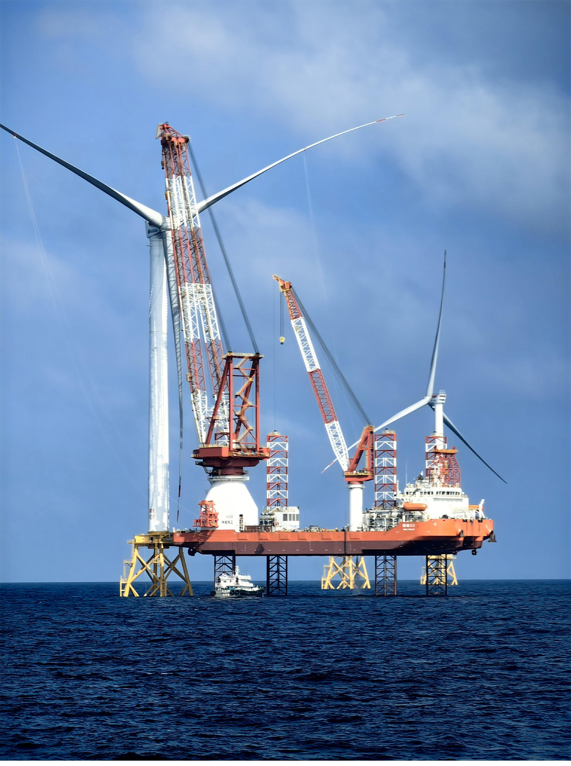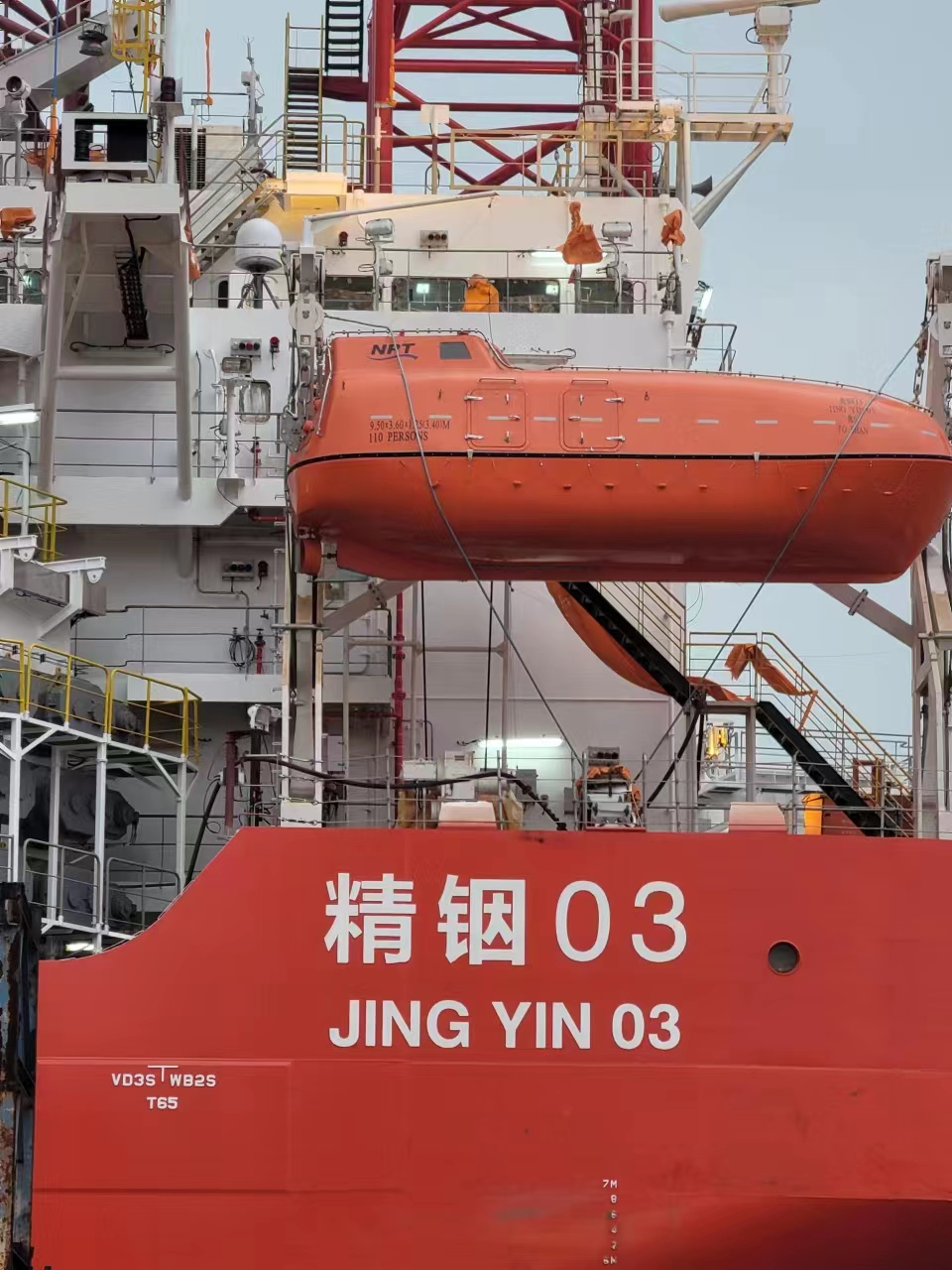 “精銦03”是專門針對南海風(fēng)場的特點設(shè)計建造,綜合兼顧了施工能力和使用費效的平衡;其核心作業(yè)裝備升降系統(tǒng)由我司自主設(shè)計生產(chǎn),擁有全部知識產(chǎn)權(quán);主起重機采用直徑11.5m整體式轉(zhuǎn)盤軸承,采用了世界超大型整體式軸承。同時,“精銦03”超前引進(jìn)油電混合動力能源管理系統(tǒng)和技術(shù),可實現(xiàn)全天候低碳綠色環(huán)保作業(yè),為國內(nèi)首座油電混合動力的海上風(fēng)電安裝平臺。